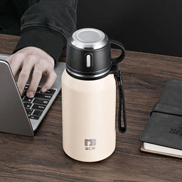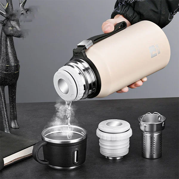 Kerge reisikannu ülemine kaas on väike käepidemega kausi kujundus, mis on mugav väikestest tassidest joomiseks.